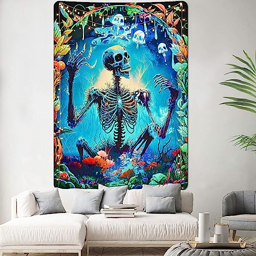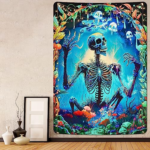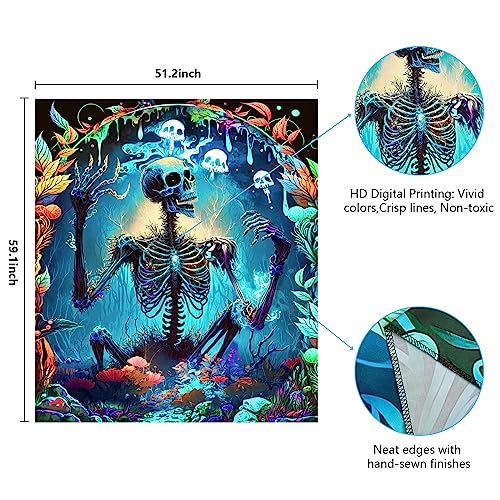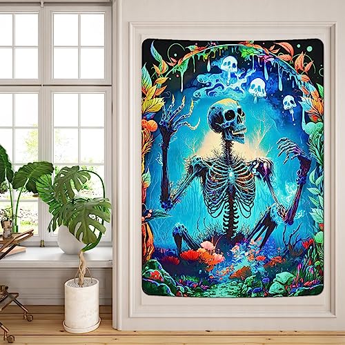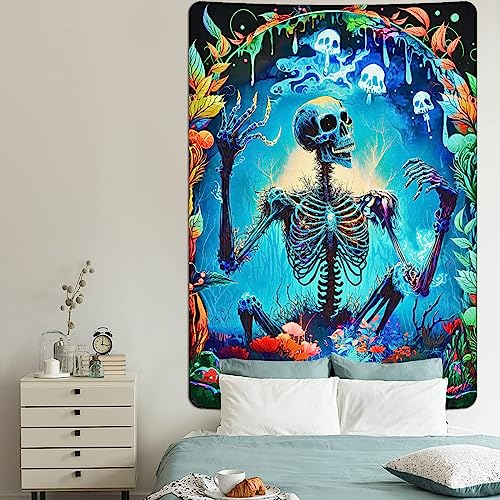 - AMAZING DESIGN: This skull tapestry is perfect skull wall art for bedroom, living room, dorm, home, etc. The colorful skeleton tapestry use advanced HD printing technology, featuring vivid colors and crisp lines will bring your room a more permanent harmonious decoration