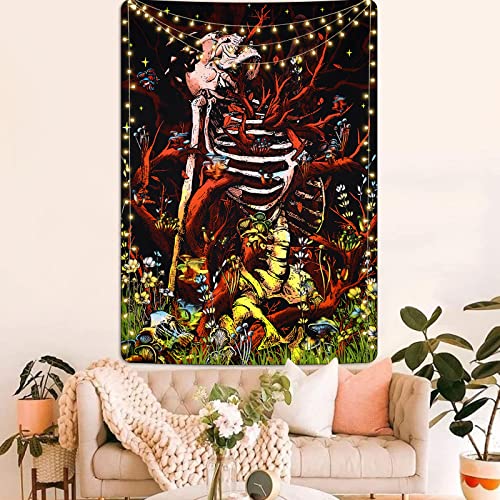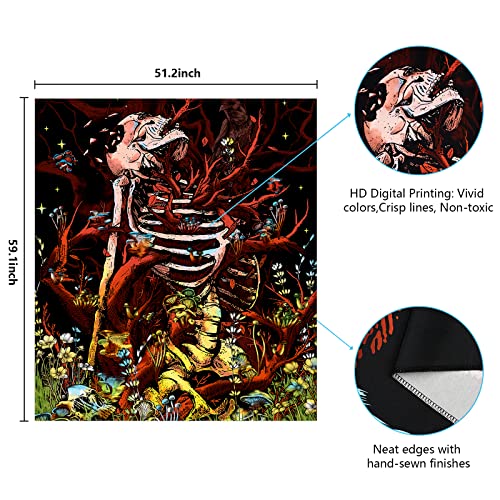 - PREMIUM MATERIAL: This creepy skeleton tapestry is made from environmental-friendly polyester fabric, which is soft, skin-friendly and lightweight. Super durable and no fading.