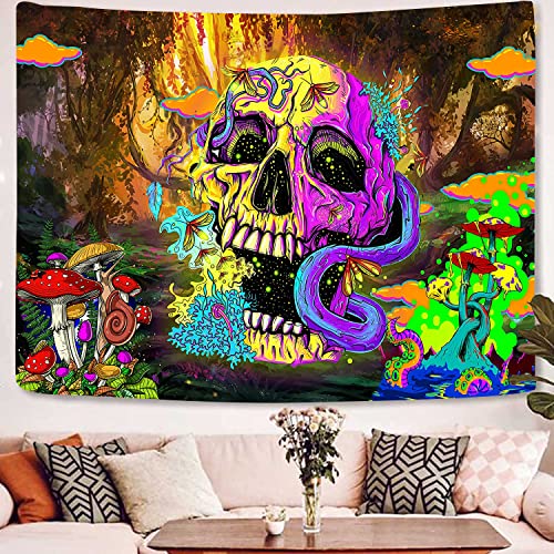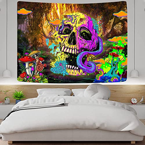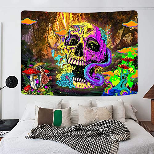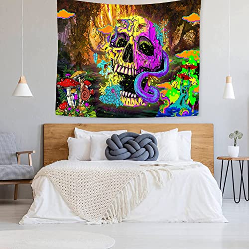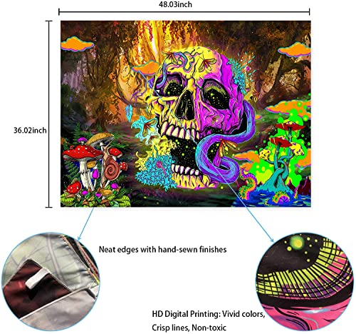 - DESIGN: trippy tapestry includes colorful Gothic skeletons, mushrooms, and mysterious forests. Add artistic color to your room, it is a home decoration suitable for all seasons.