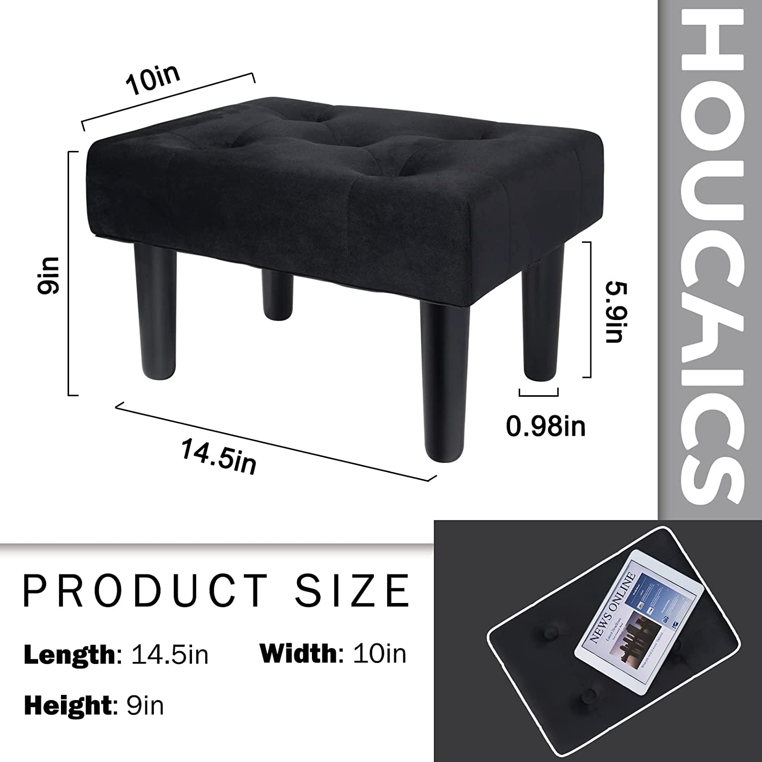 Small Footstool Ottoman,Velvet Soft w/ Wood Legs,Sofa Footrest Extra Seating for Living Room (Black 1PACK)