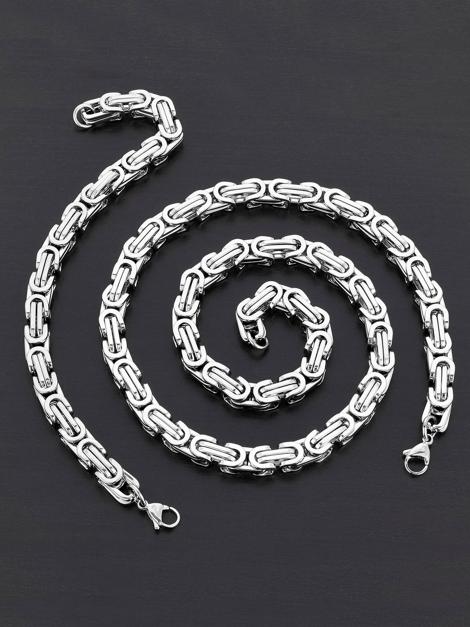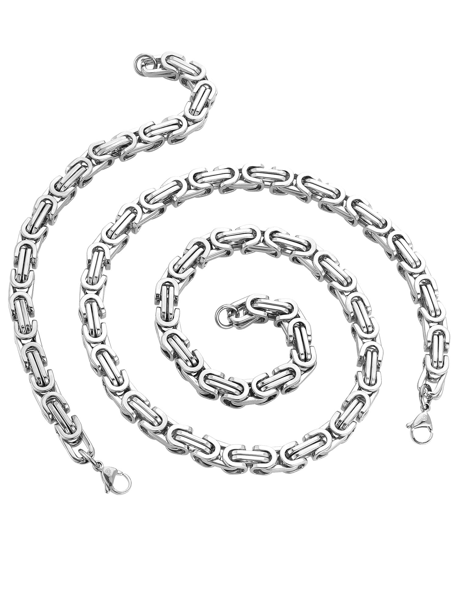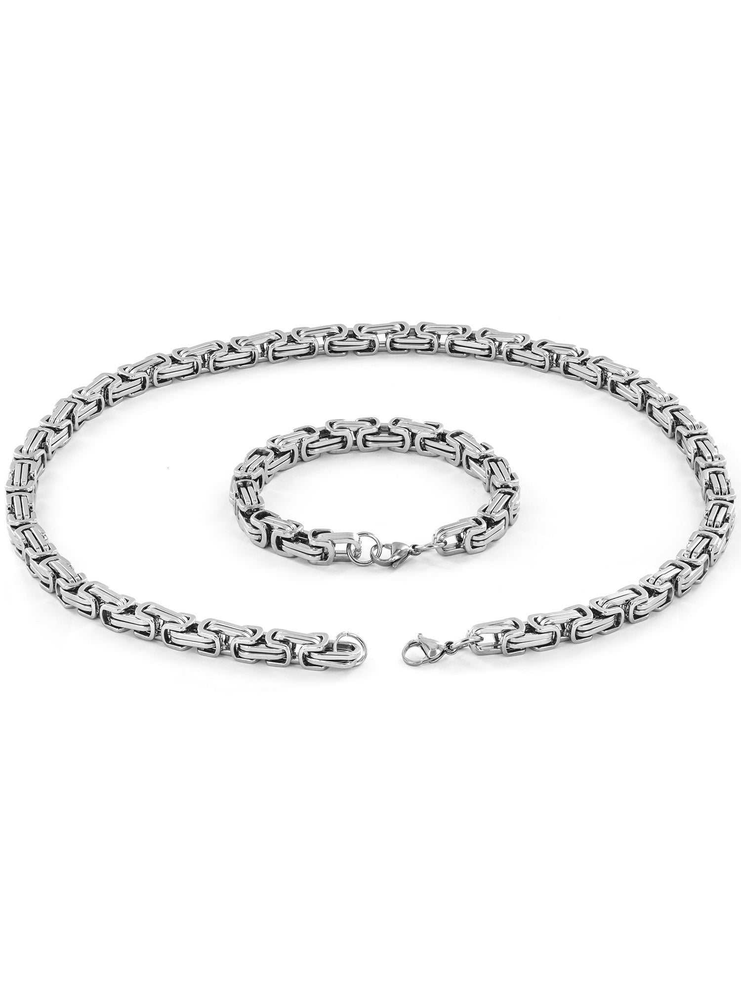 Add bold impact to any outfit with this sturdy stainless steel Byzantine style necklace and bracelet set.