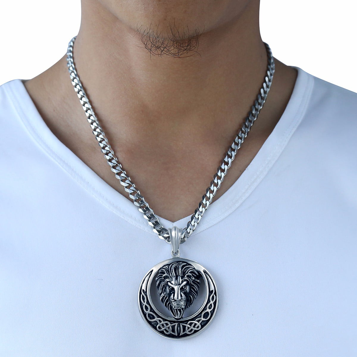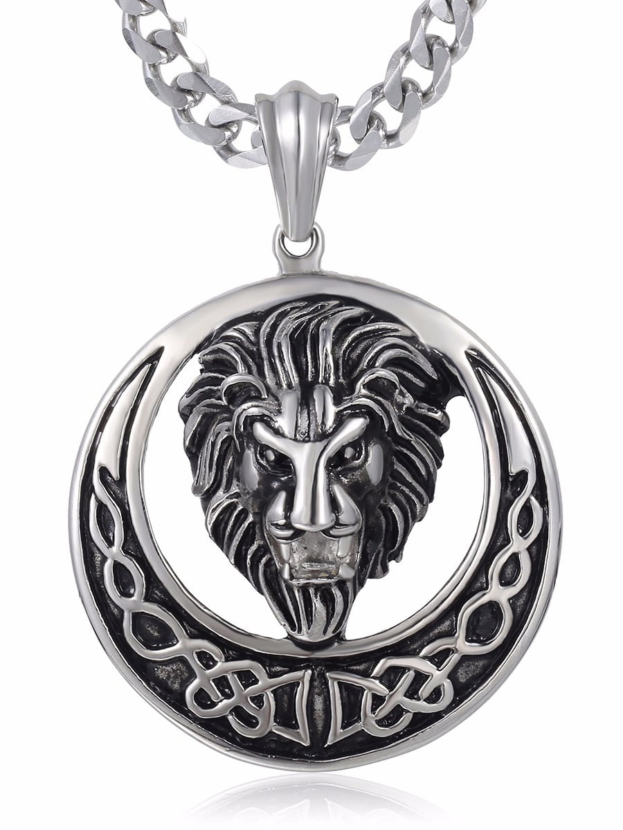 Measurement: pendant Size:Length: 65mm Width:48mm (Bail: 10mm*7mm) Chain Size: 18-30inch Hermah Gold Plated Stainless Steel Lion Pendant Necklace Mens Boys Curb Cuban Chain 18-30inch