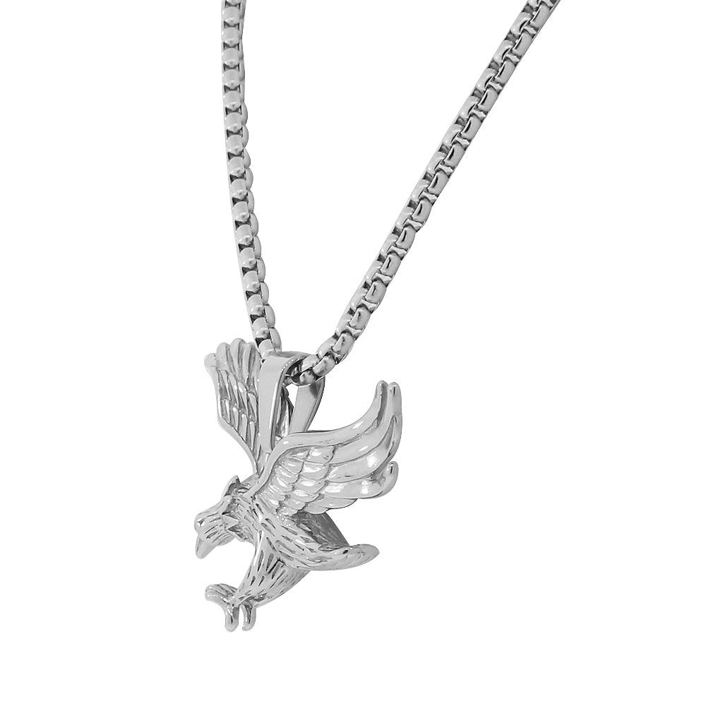 Stainless Steel Silver-Tone Bird Eagle Statement Men's Pendant Necklace, 24"