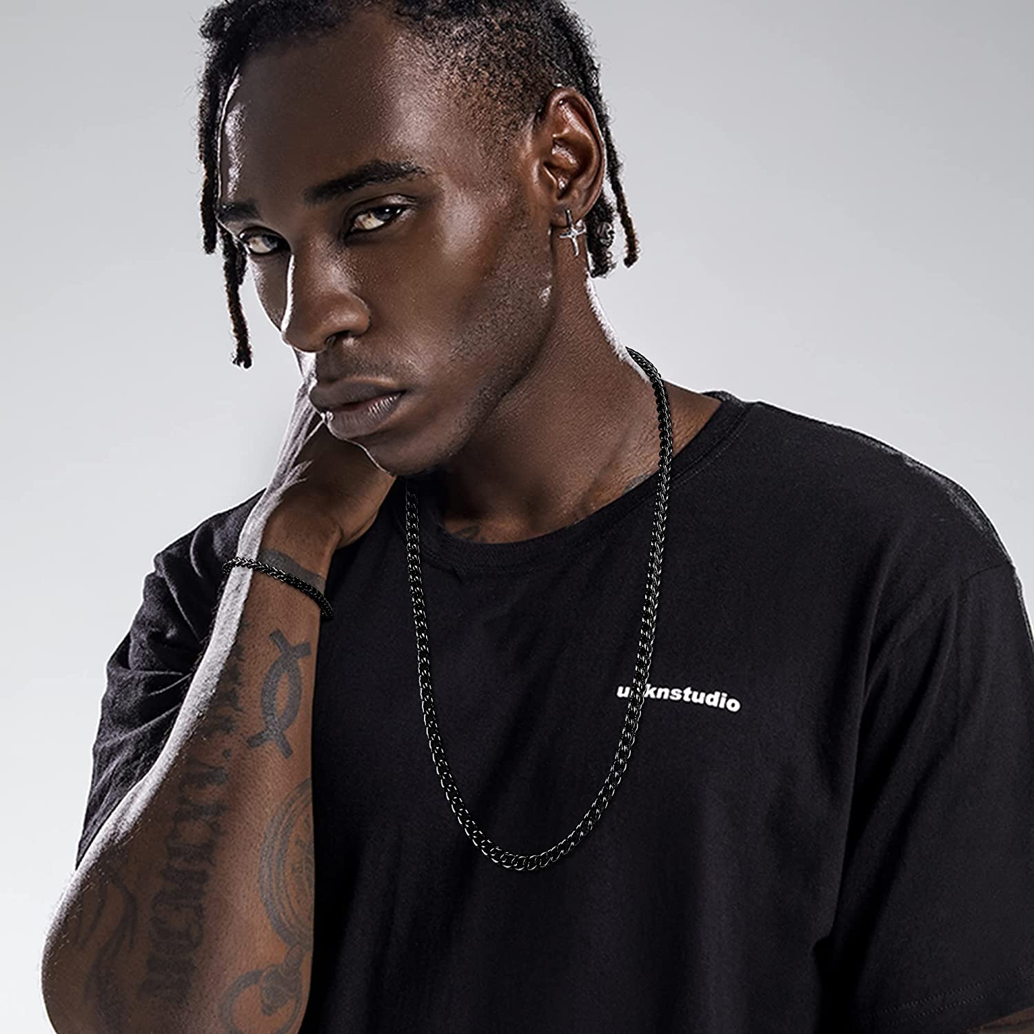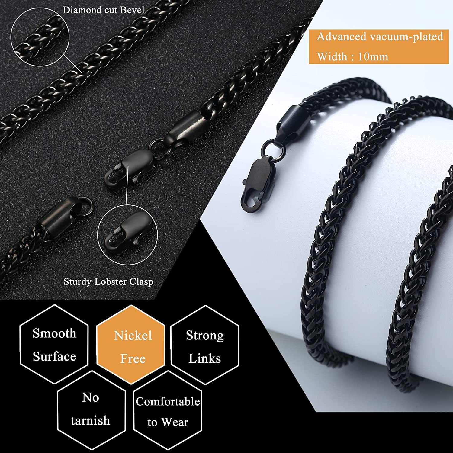 - 5mm 22 inches Chain Necklace and 8.5 inches Bracelet, Suit to Men and Women; Wearing the Necklace Alone or Adding on Pendants You like are Both Perfect.