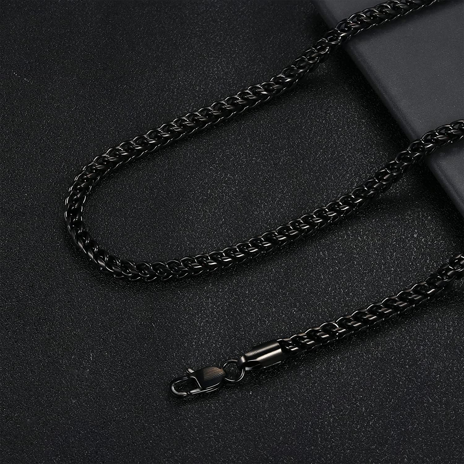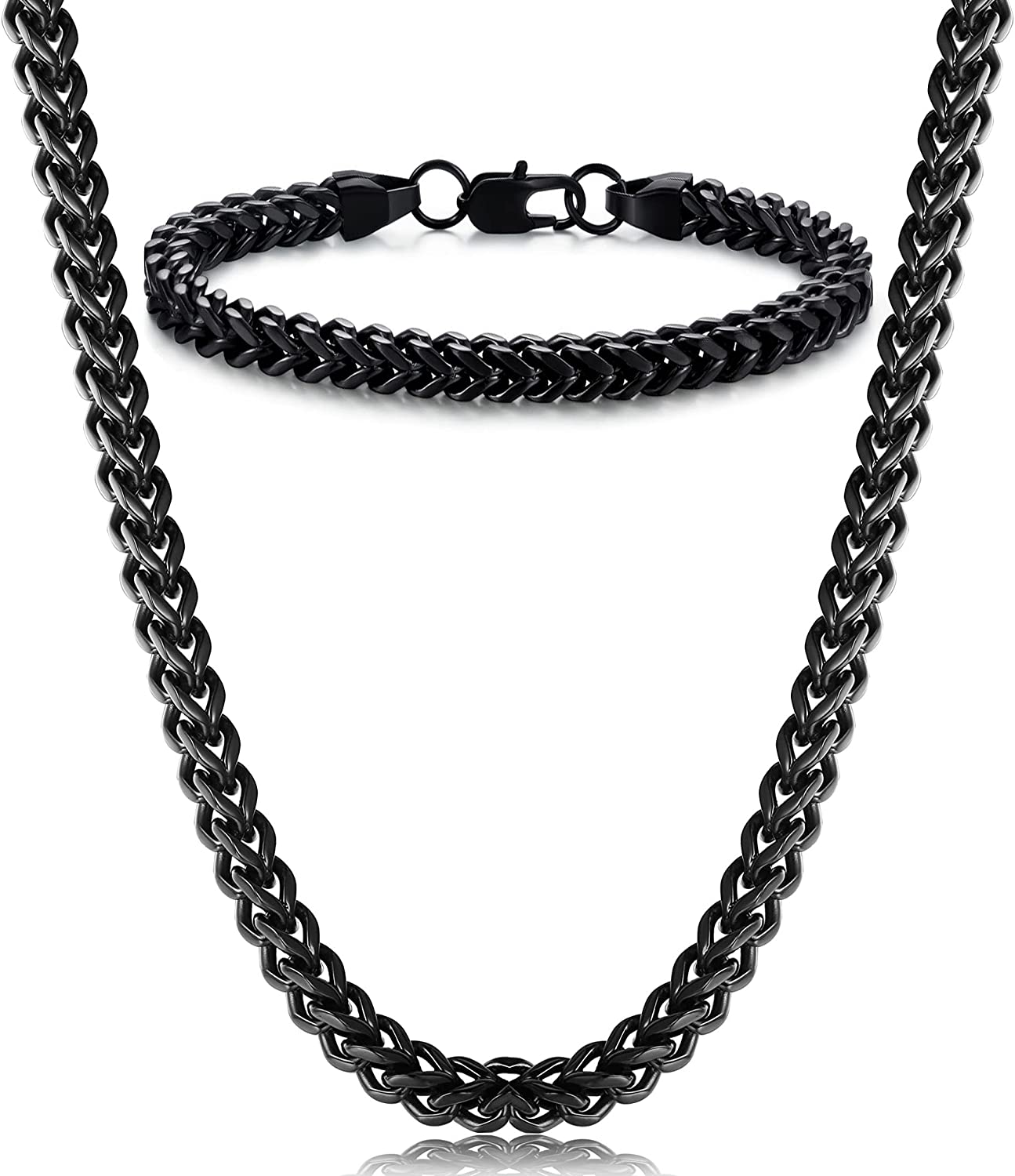 Stainless Steel Wheat Chain for Men Necklace Bracelet Set 5mm in W, 22" 8.5", Black-tone