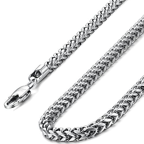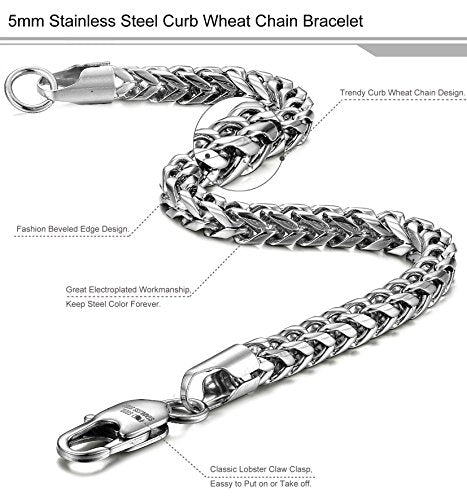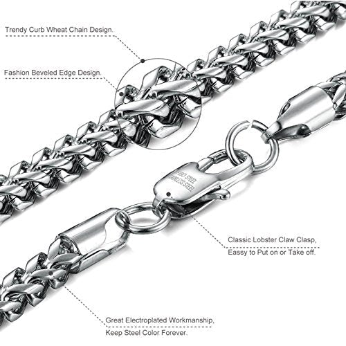 Stainless Steel Wheat Chain Necklace for Men Women Set 5mm in Width, 22" 8.5"