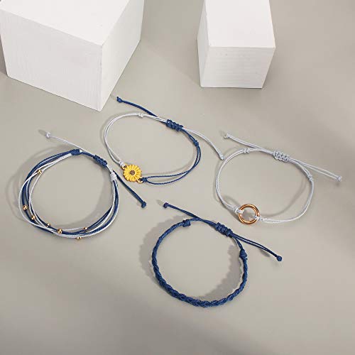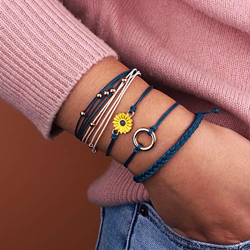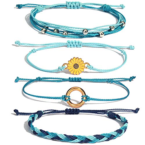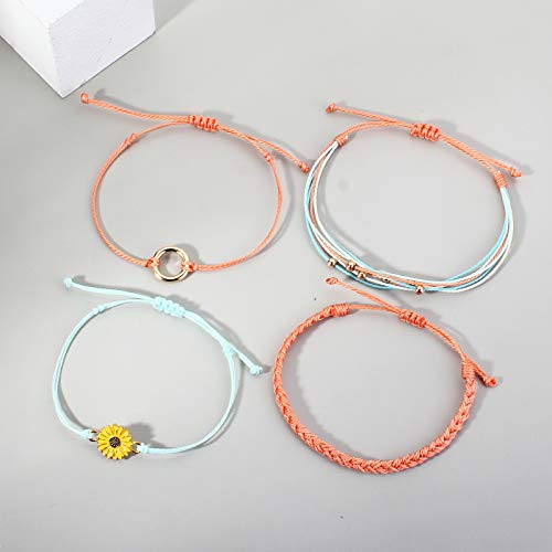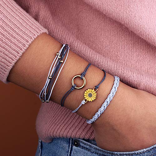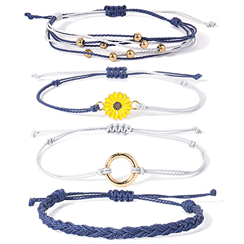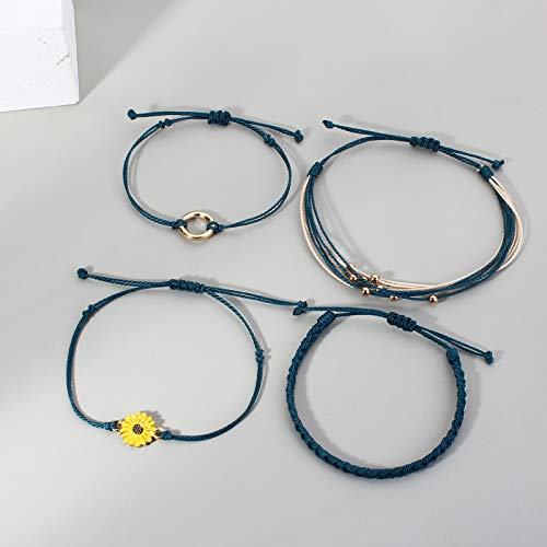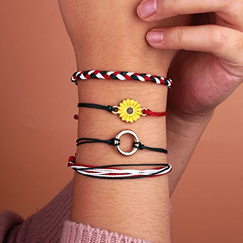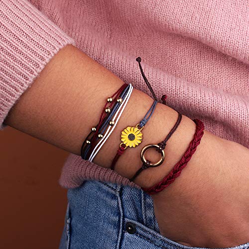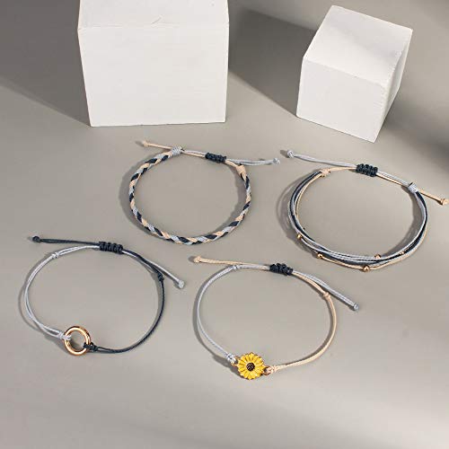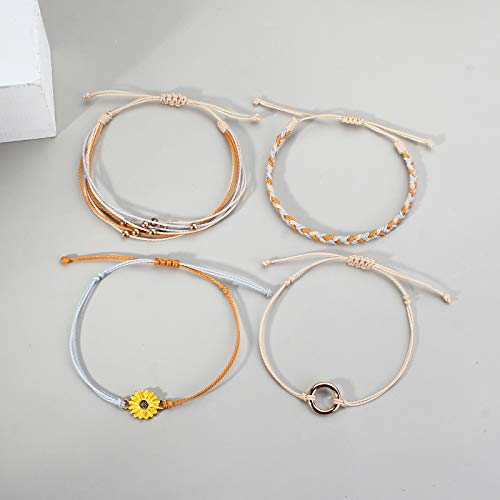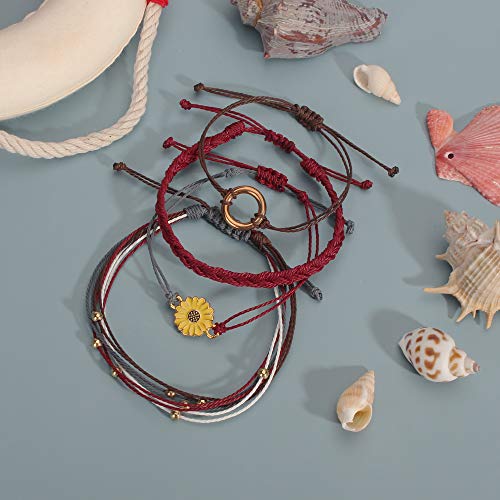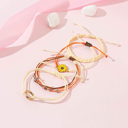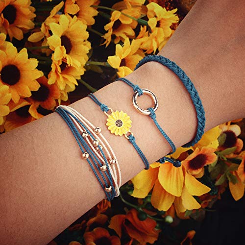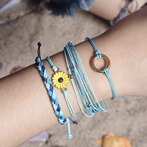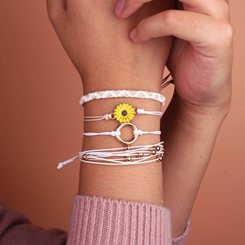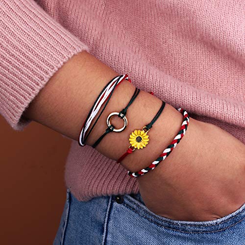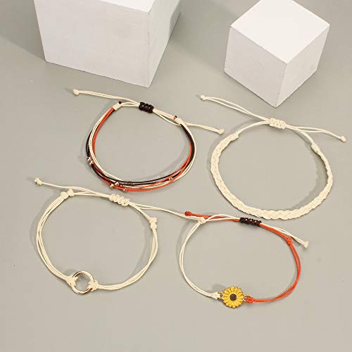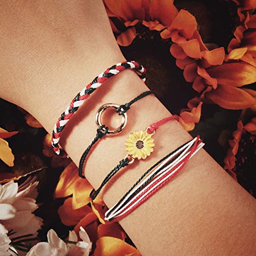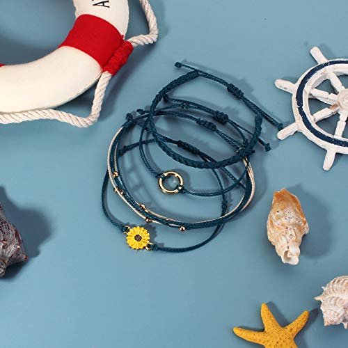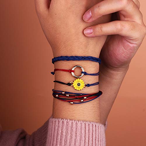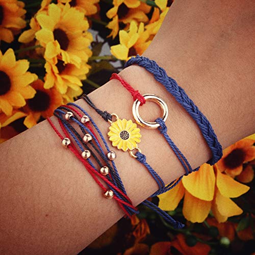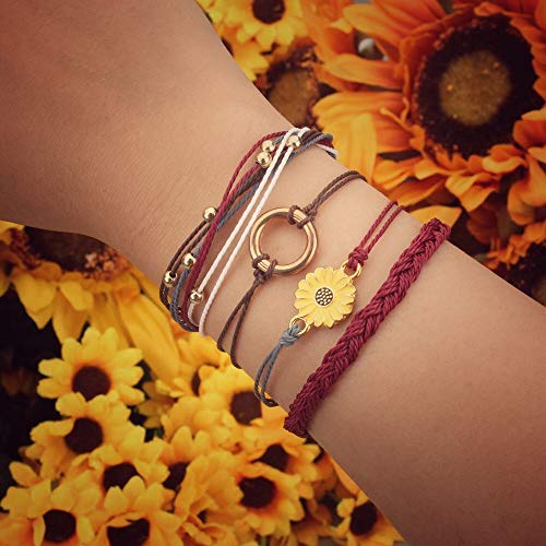 Sunflower String Bracelet Handmade Braided Rope Charms Boho Surfer Bracelet