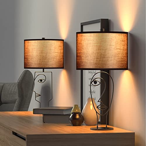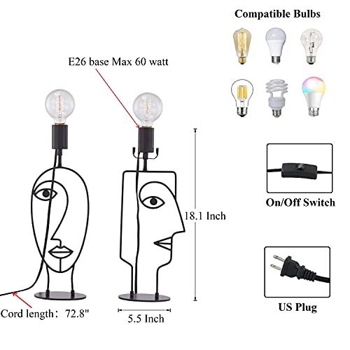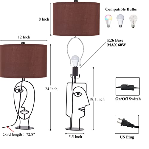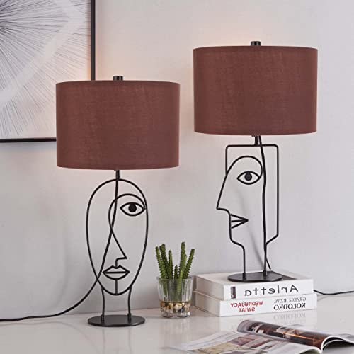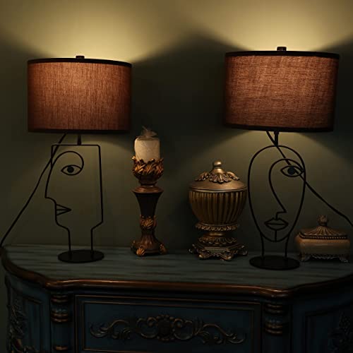 - 【Gorgeous Artistic Table Lamps】Inspired by vintage style, flawless black spray paint and man/woman face-shaped make the modern table lamp look artistic and unique. The special face-shaped design and brown fabric shade is suitable for most home decoration styles which can turn your home in to a modern, classic, rustic atmosphere. Perfect for the entryway, living room, bedroom, or office area. Decorative and practical, what a perfect present/gift for your family or friends!