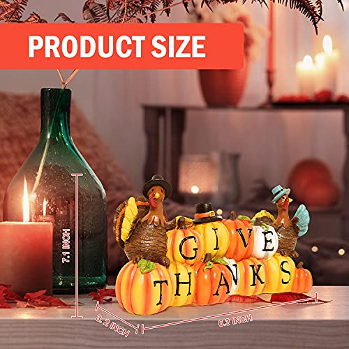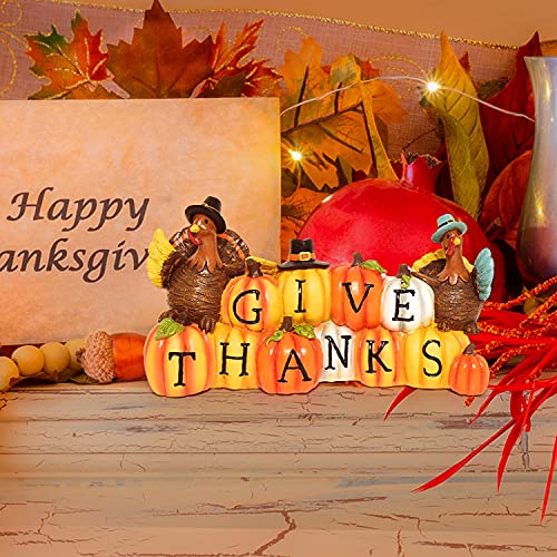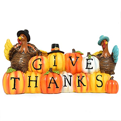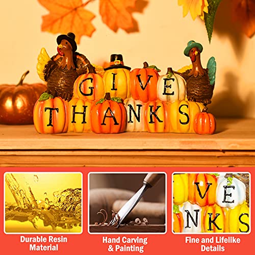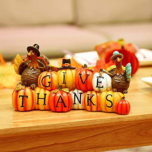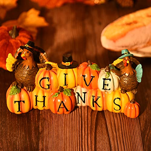 Thanksgiving Hand-Painted Give Thanks Pumpkin & Turkey, Resin Figurine Turkey Harvest Decorations