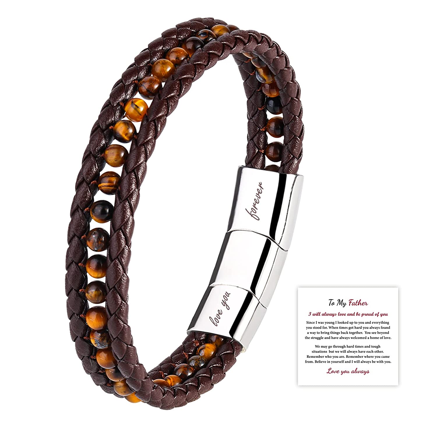 - 【Perfect Gift For Father】 "Love You Forever" Braided Leather Bracelet - To My Father, always remember that you are braver than you believe, stronger than you seem, smarter than you think, and loved more than you know. This leather bracelet is the perfect way to express your care and love for him.