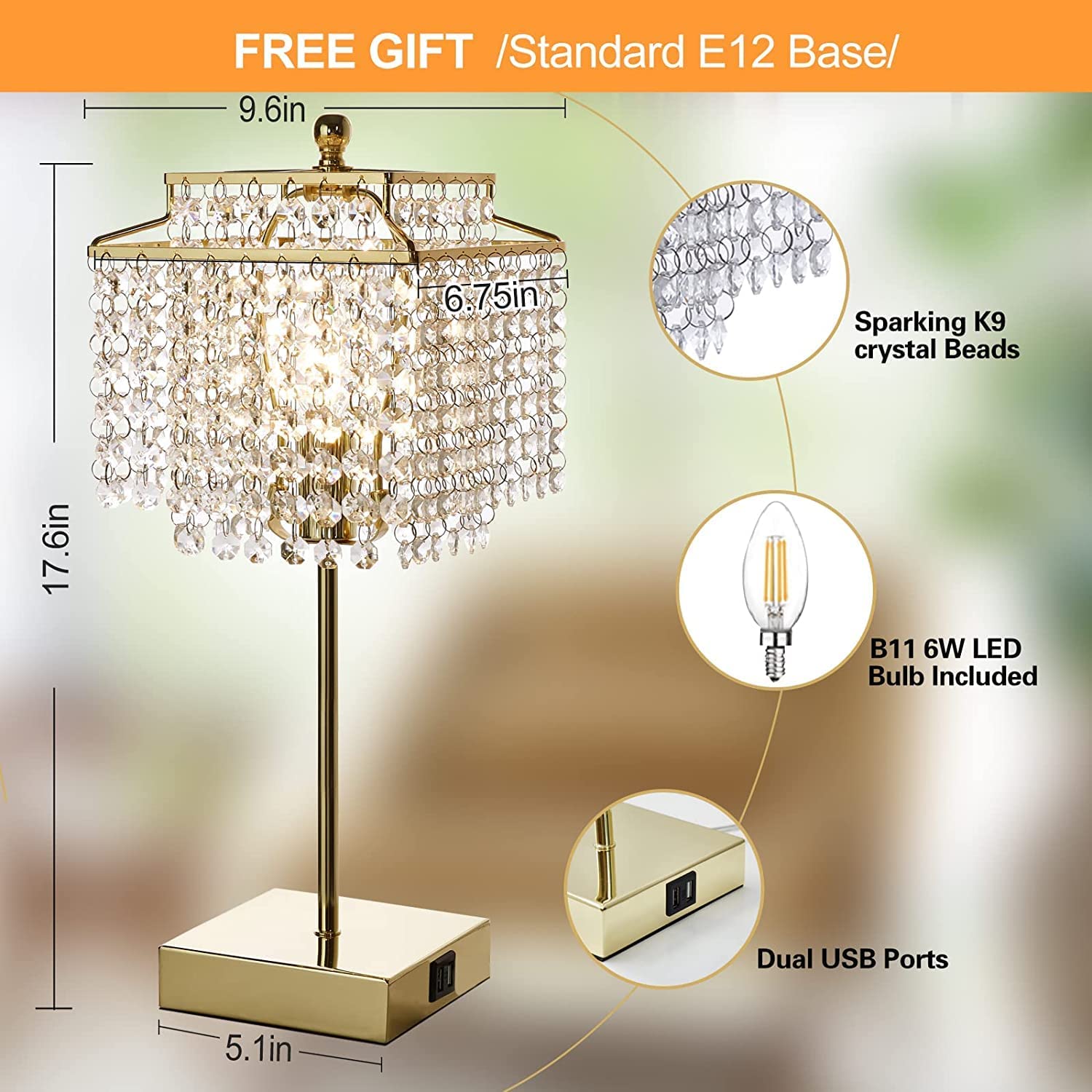 - 【Bedside lamp with Dual USB Charging Ports】 this Crystal lamps with two usb charging ports allow you to charge the smartphones, tablets, power banks, kindle readers or any other USB powered devices. Avoid the trouble of finding wall plug for your electronic devices.