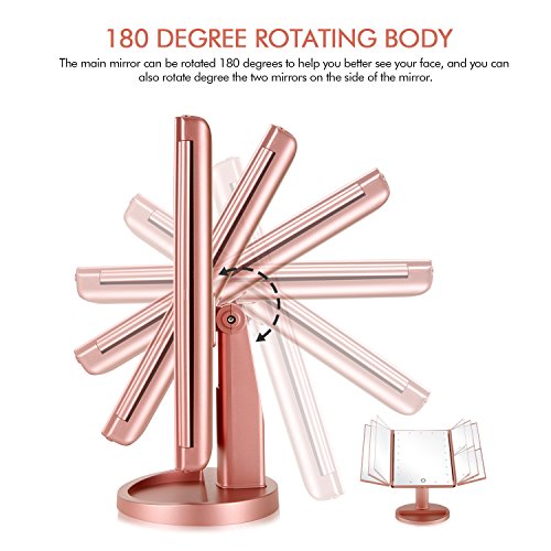 - TRI-FOLD DESIGN : Easy for take away and daily maintenance, can be opened or folded this light up mirror when not using to protect it away from the dust or scratches. Special crafted champagne ROSE GOLD color, quite elegant and sleek appearance. This is a good birthday gift for women.