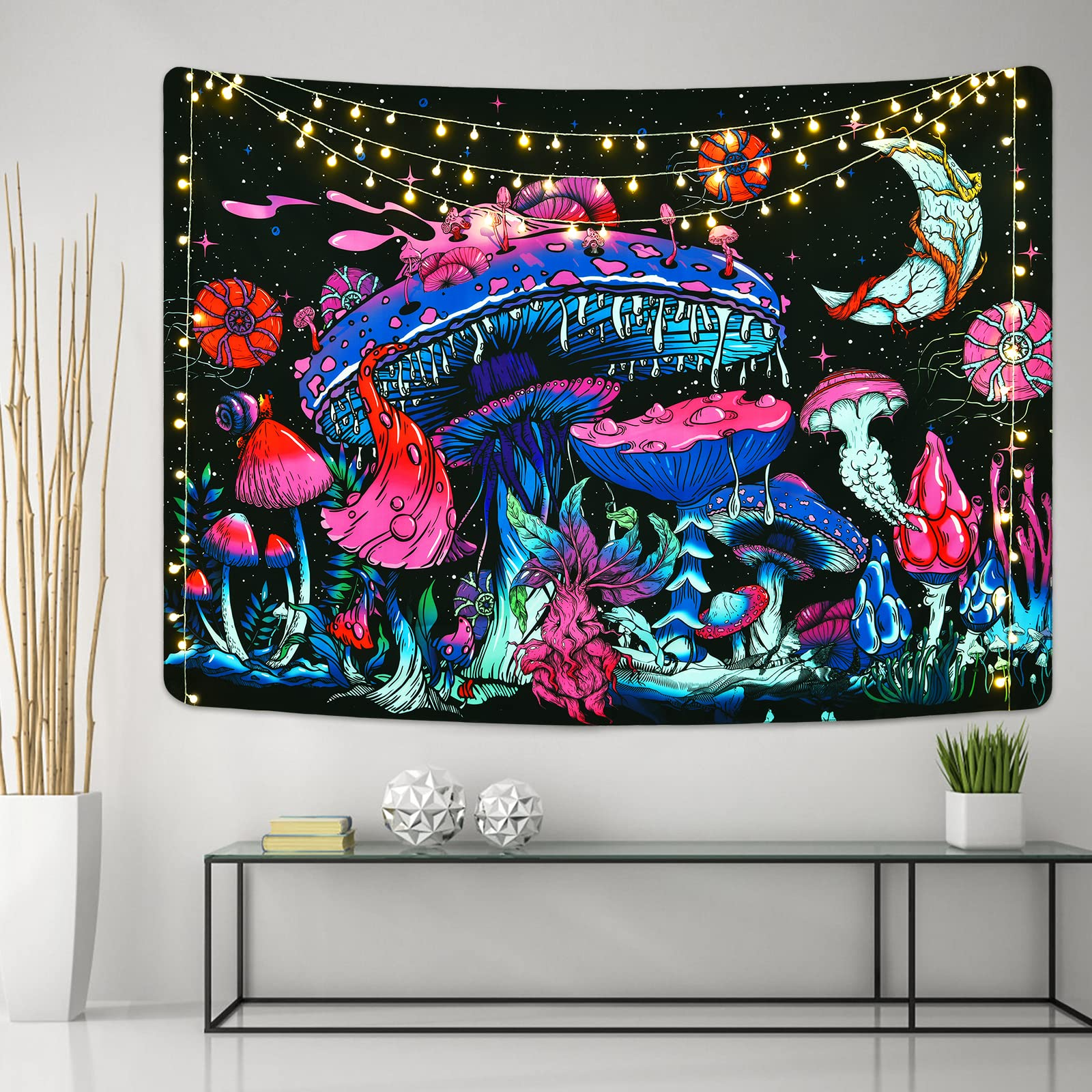 Trippy Mushroom Tapestry Multicolor Home Decor, 59.1"x51.2"