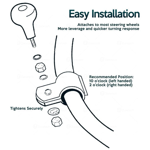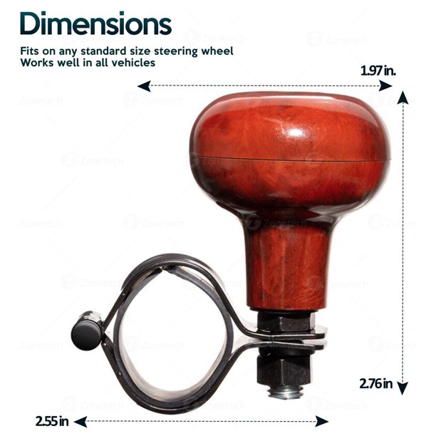 Installation of this device is extremely simple. Just attach this spinner onto the steering wheel and its ready to provide leverage for greater mobility and control. This spinner wheel works well with every type of vehicle and will fit any standard size steering wheel.