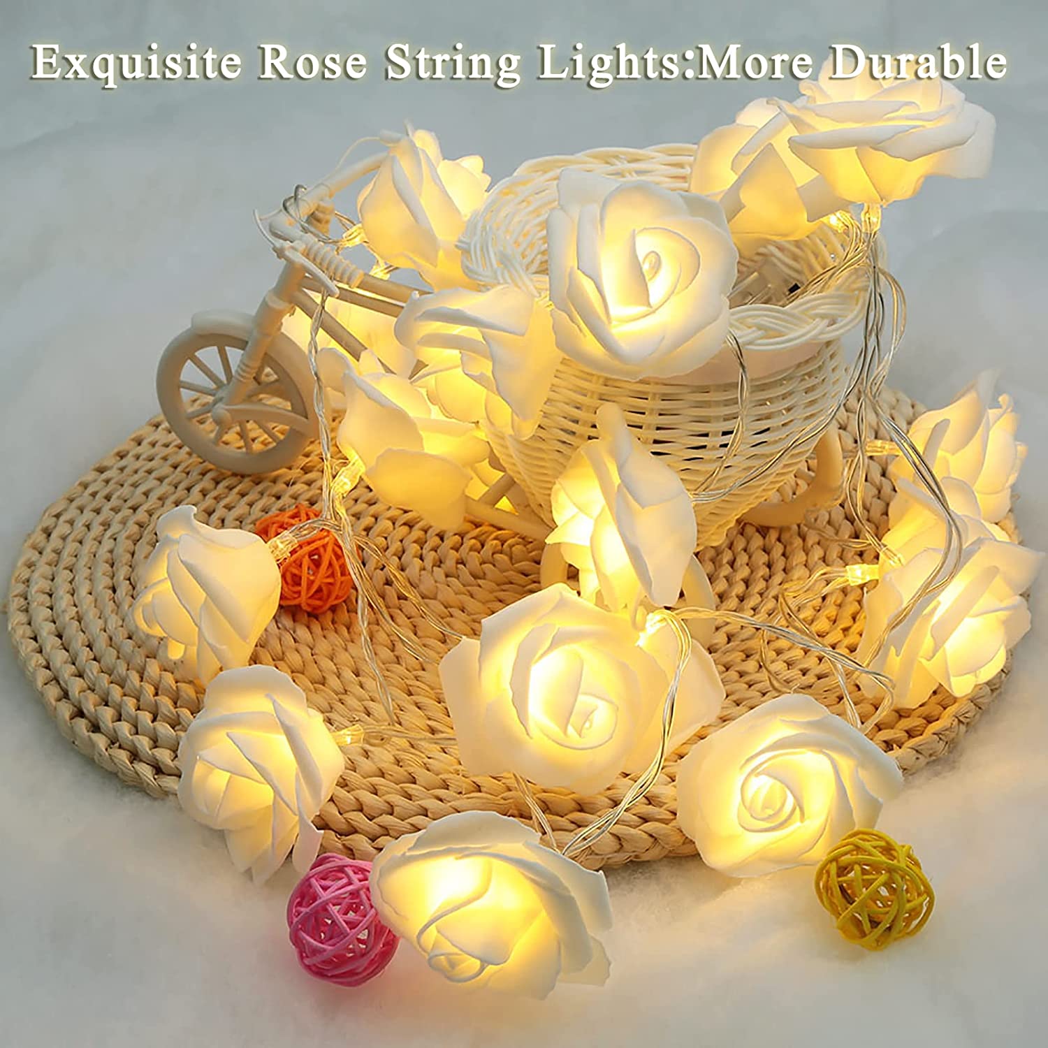 - 【Romantic Valentines Day Rose lights】: Roses symbolize love, so we designed this rose lights to highlight your Valentine’s day. This romantic atmosphere builder are perfect for room decoration & an ideal gift for your loved one. Turn on the 30 white rose lights and enjoy the light glowing your lover's face. The candlelight dinner will gets sweeter with the rose lights decorating the table.