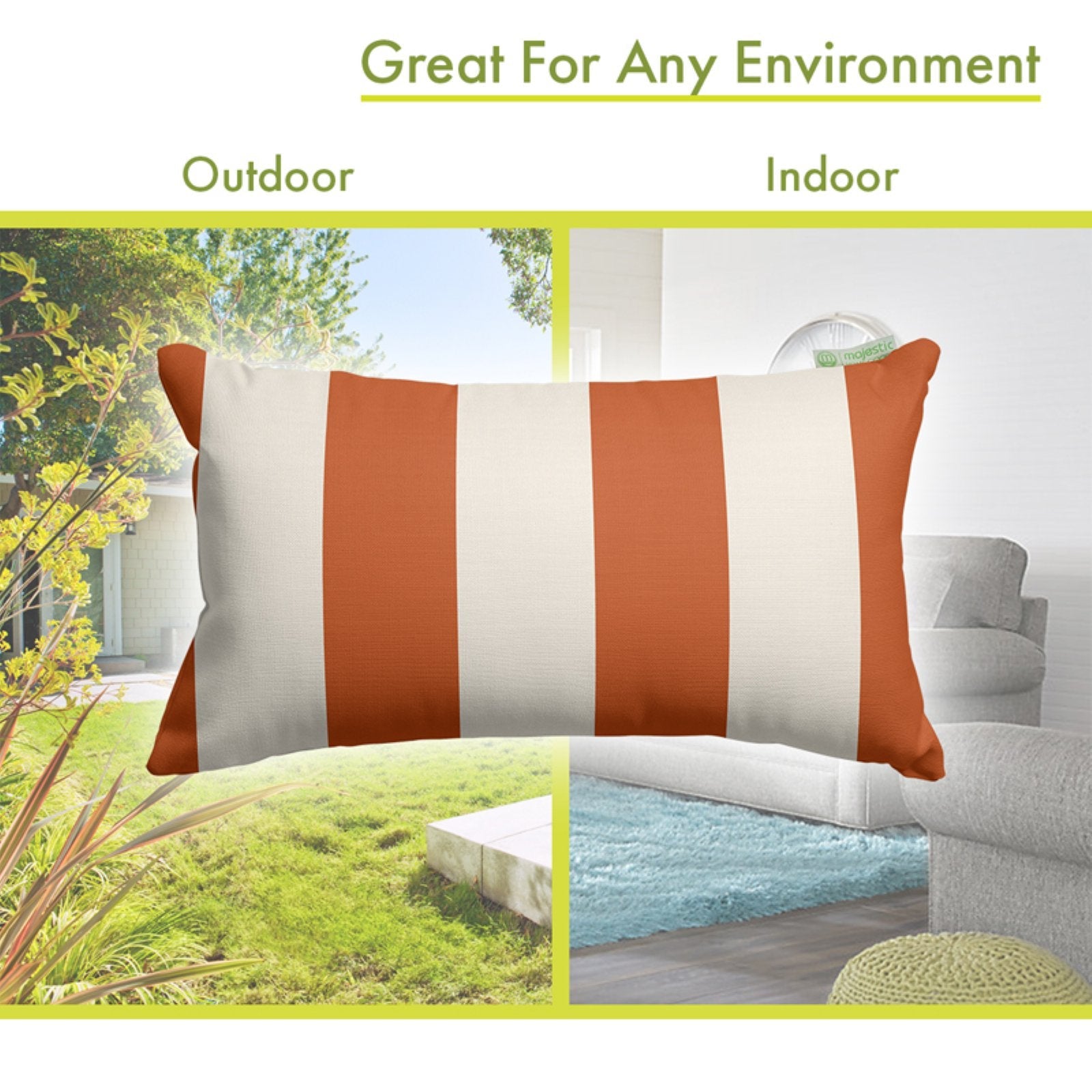 The versatile Vertical Stripe Indoor / Outdoor Small Pillow is designed for use indoors or out. This rectangular pillow boasts soft, hypoallergenic polyester design. The cover features a playful stripe pattern and can be spot cleaned. *- Dimensions: 20W x 5D x 12H in. *- Polyester construction *- Hypoallergenic design *- Choose from available color options *- Spot clean only *- Rectangular shape *- Indoor or outdoor use