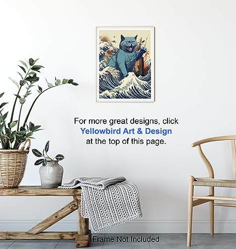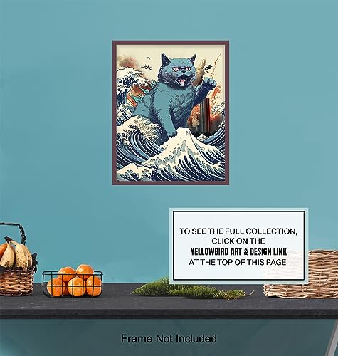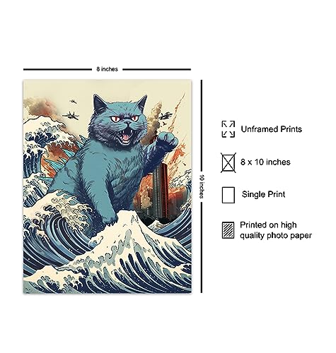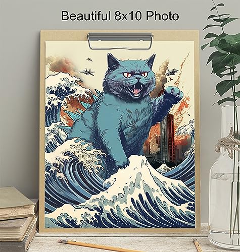 Vintage Funny Cat Wall Catzilla Japanese The Great Wave off Kanagawa Cute Cat Stuff Cat Wall