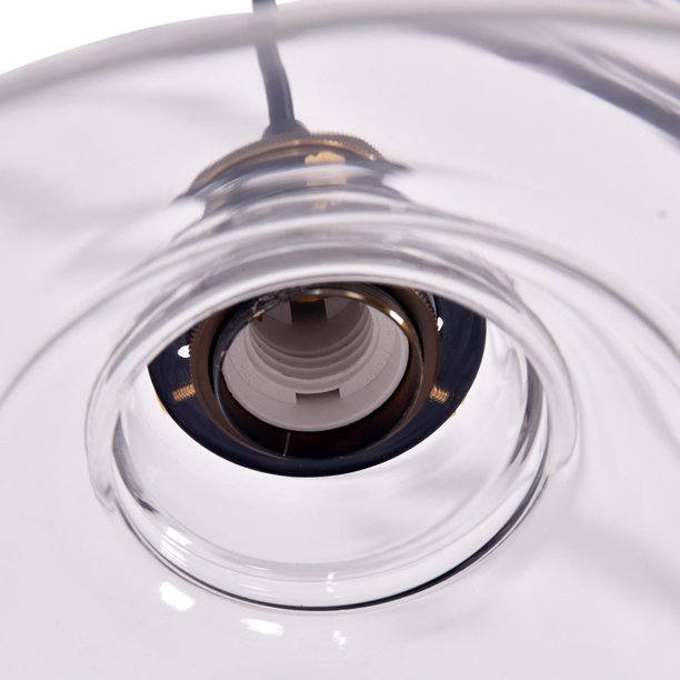 Multi Application: 10'' round canopy with a 31-1/2'' cord gives maximum flexibility in hanging heights. Clear glass shade equips with E26*60W bulbs. This industrial-inspired mini pendant looks great in multiples situation.