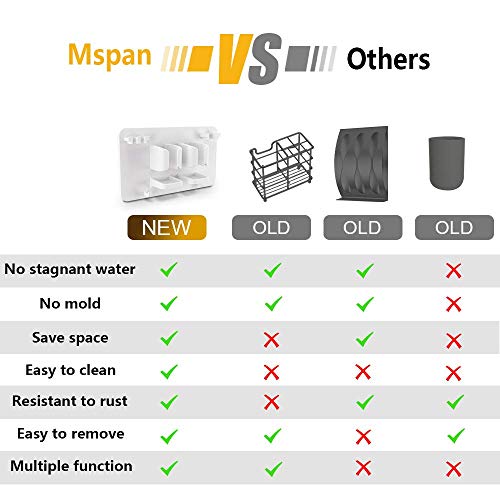 - Wall Mounted - This toothbrush holder comes with an adhesive hanger. Free punching, easy to mount and save shower space. You can mount the bathroom organizer on wall, mirror and tile. The Mspan wall toothbrush holder set is a multi-functional shower organizer and the functional open bottom design provides proper airflow to dry wet toothbrushes. The toothbrush razor holder is a cool stuff.