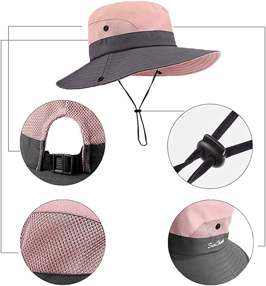 - Ponytail sun hat design: Adjustable chin drawstring for fixing the sun hat, especially in windy days. You can adjust the hat circumference to fit your head size by yourself.
